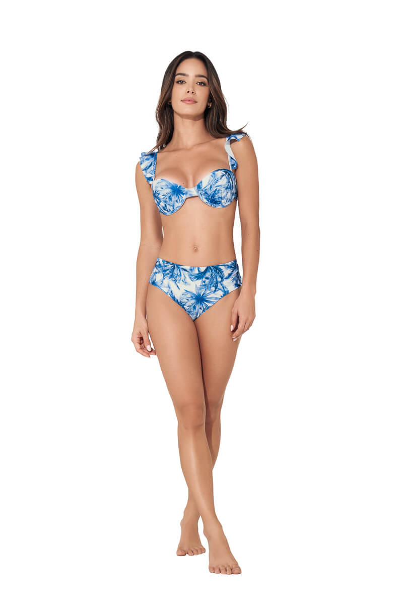 Bikini bottom de talle alto, cobertura moderada. Estampado con una combinación de colores perfecta.